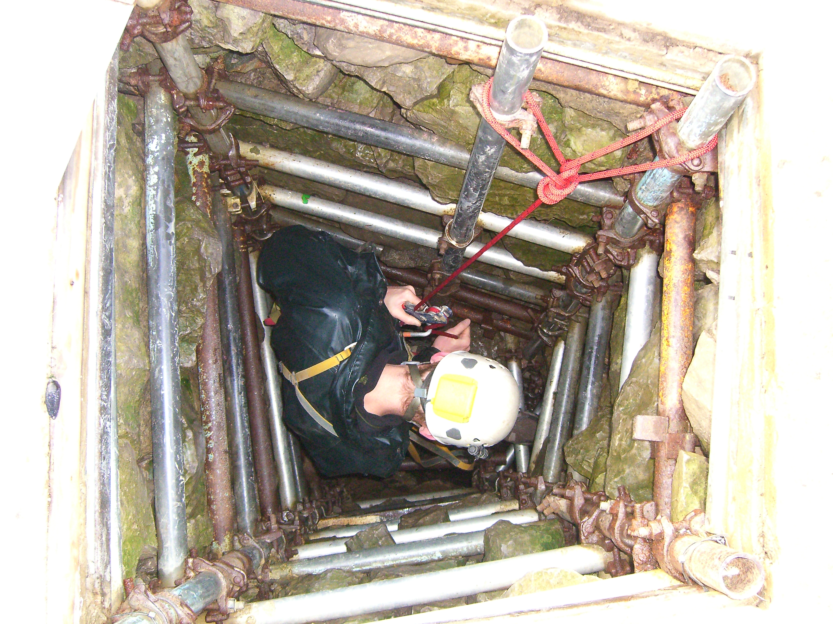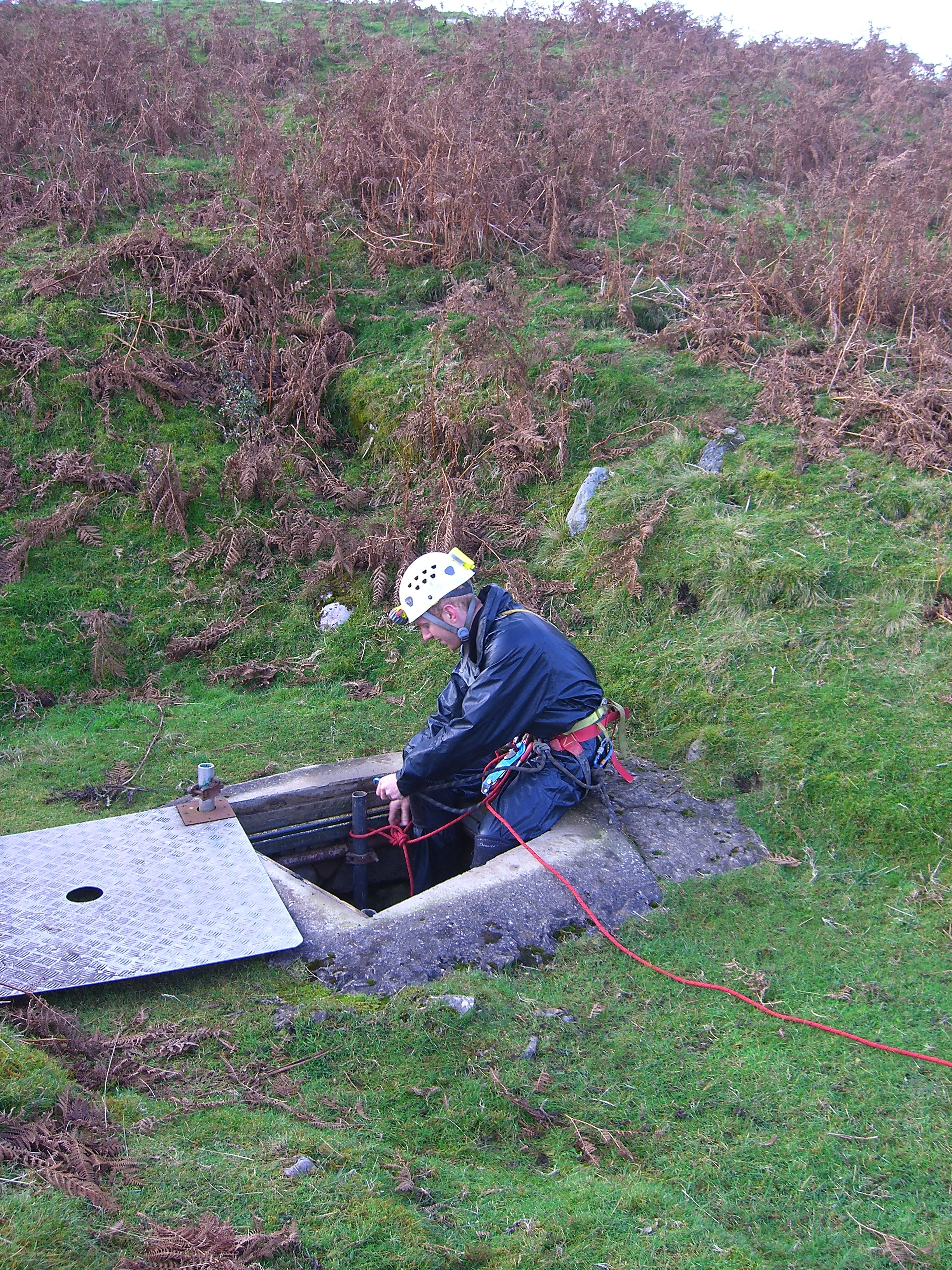 Just up valley is a stream near a wall, follow this up the hill until the stream goes through the wall. Don’t cross the wall but turn left and walk to a dry valley. Follow this uphill till you see the obvious lidded shaft.